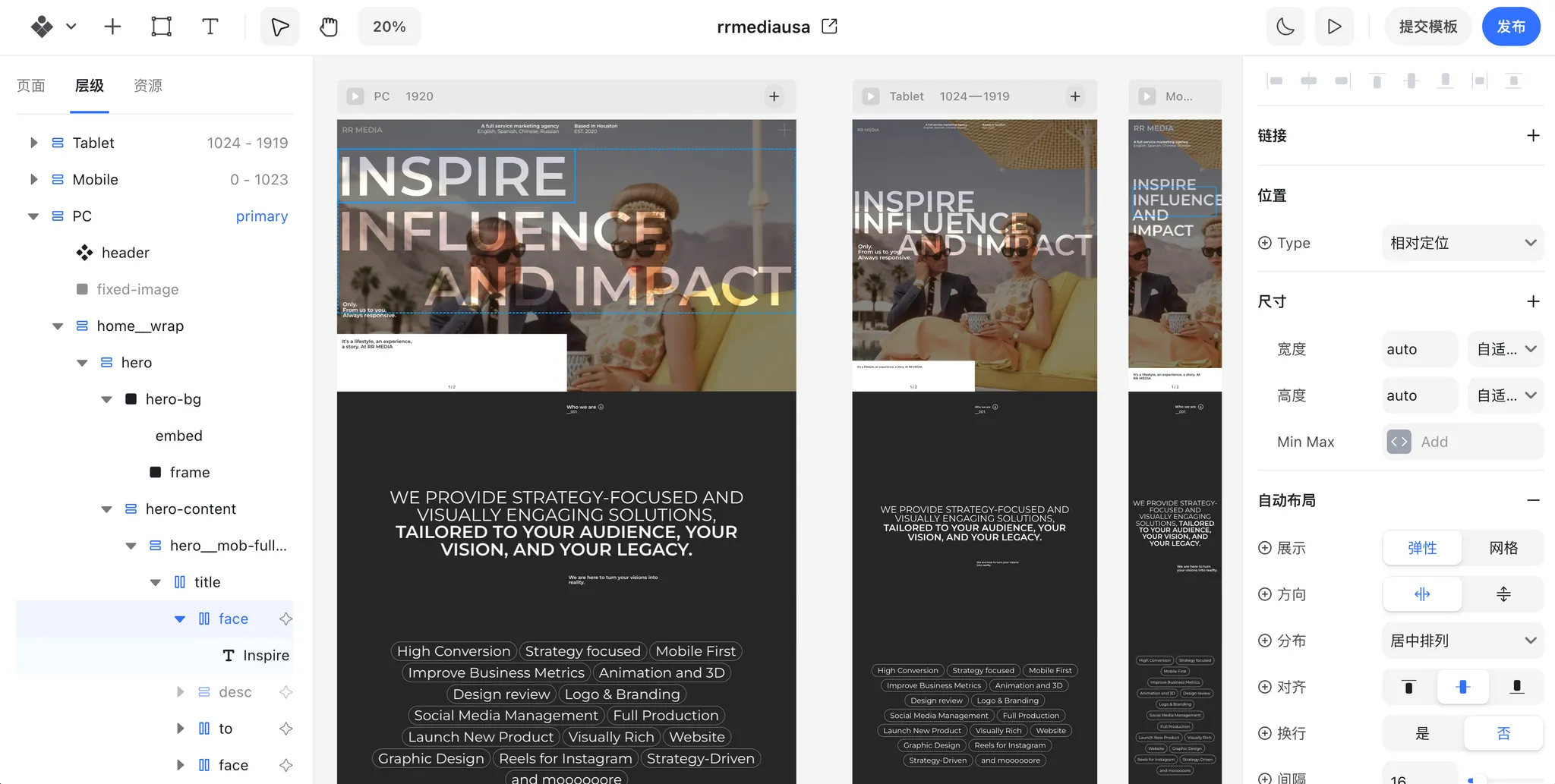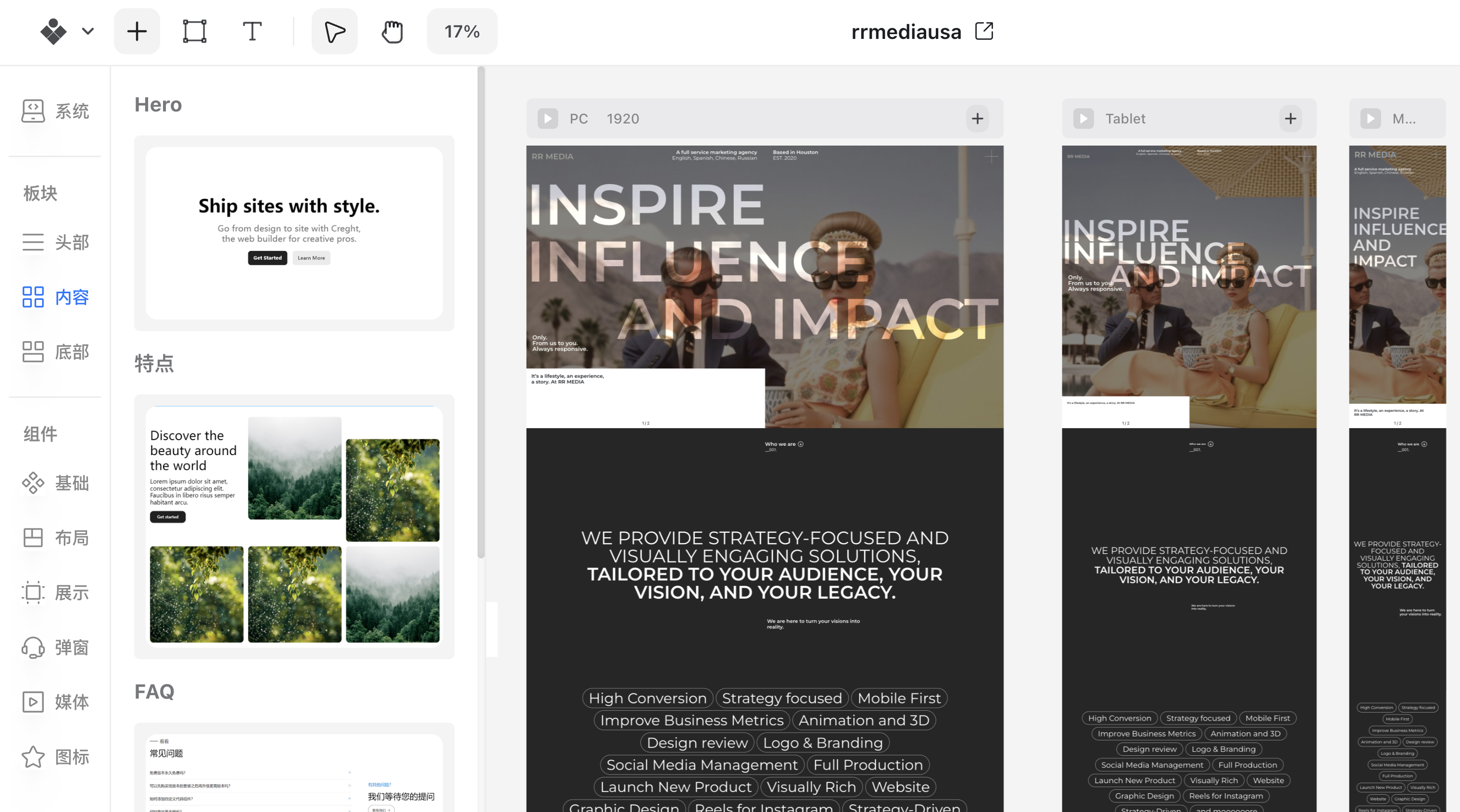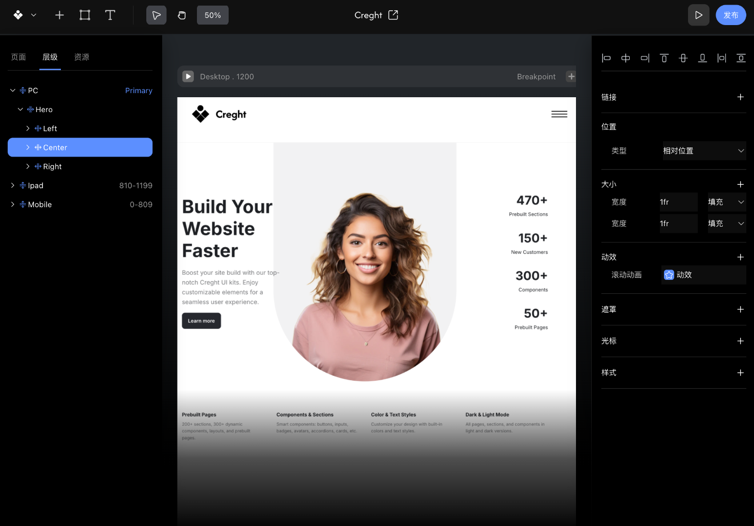 在同一张画布上查看 Pc、Pad、Mobile 端样式,熟悉 Figma 的设计师可以快速上手,不必从头再学。